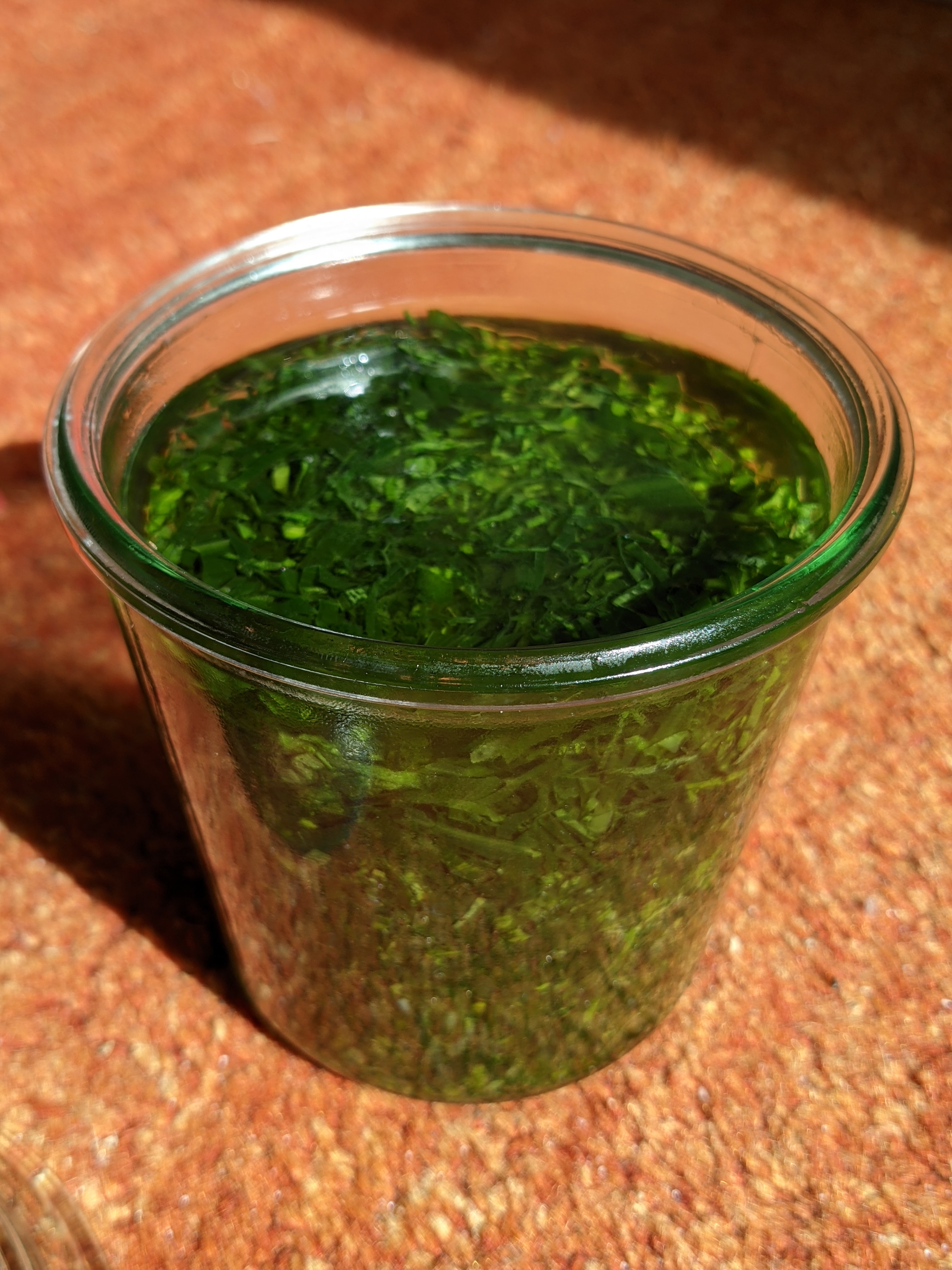 Terminer par recouvrir le tout de 1 centimètre d’huile claire, pour éviter tout contact avec l’air et les possibles moisissures.