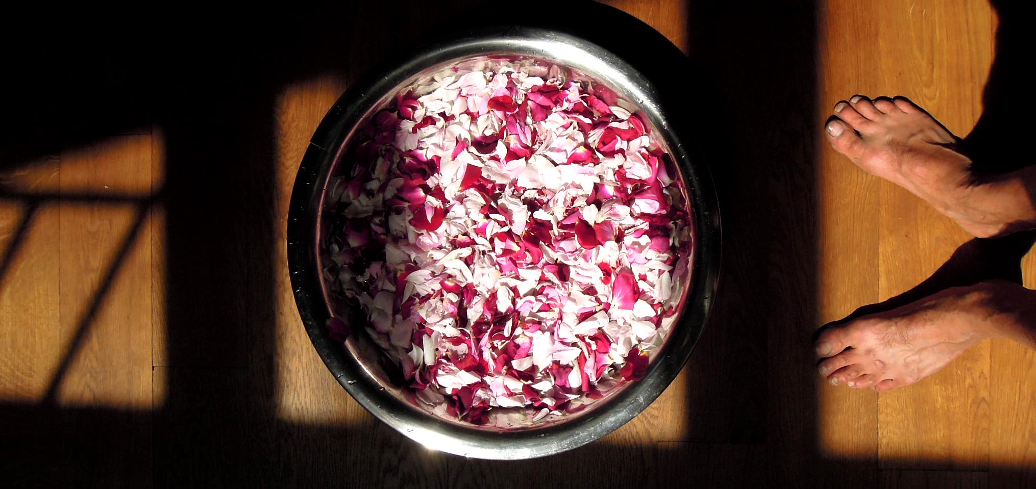 Tremper 5 mn les pétales dans une bassine d’eau froide afin de séparer les insectes qui s’y trouvent.