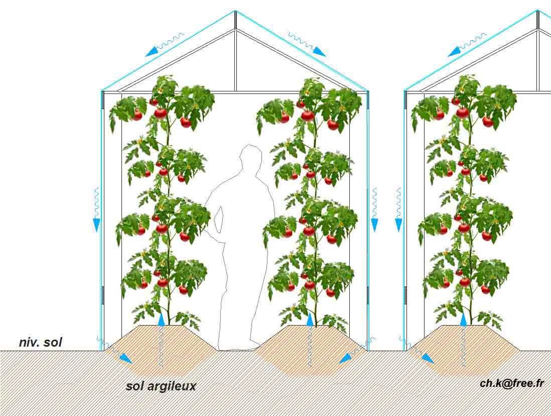 - serres étroite : mauvais rendement en raison du peu de bénéfice thermique du sol.