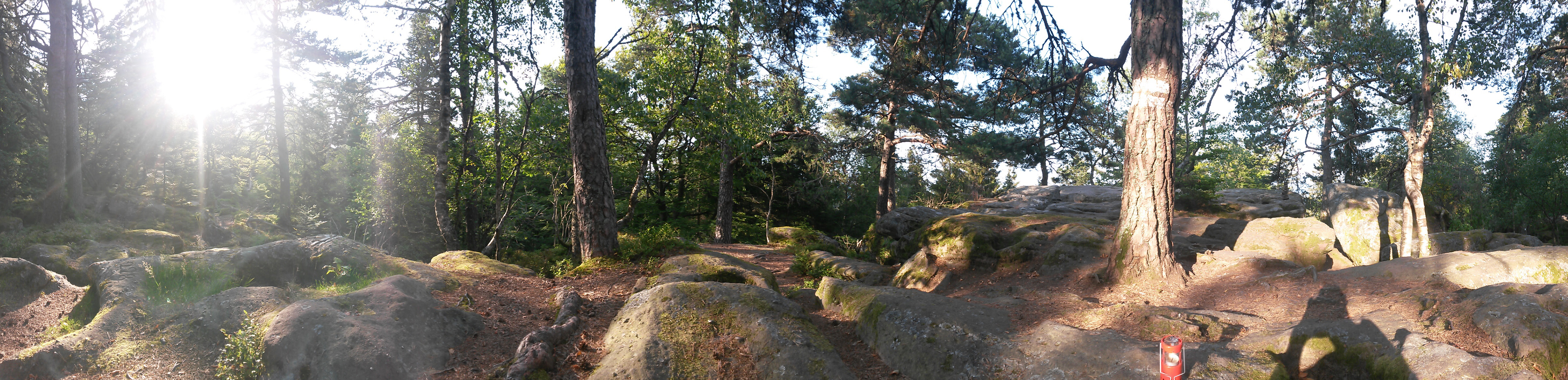 .... arrivée au rocher des géants, au sommet du Taennchel, après une heure de marche. Dans cette dernière partie de l’ascension, le vélo a été laissé au bord du chemin, caché sous des branchages et des feuilles mortes.