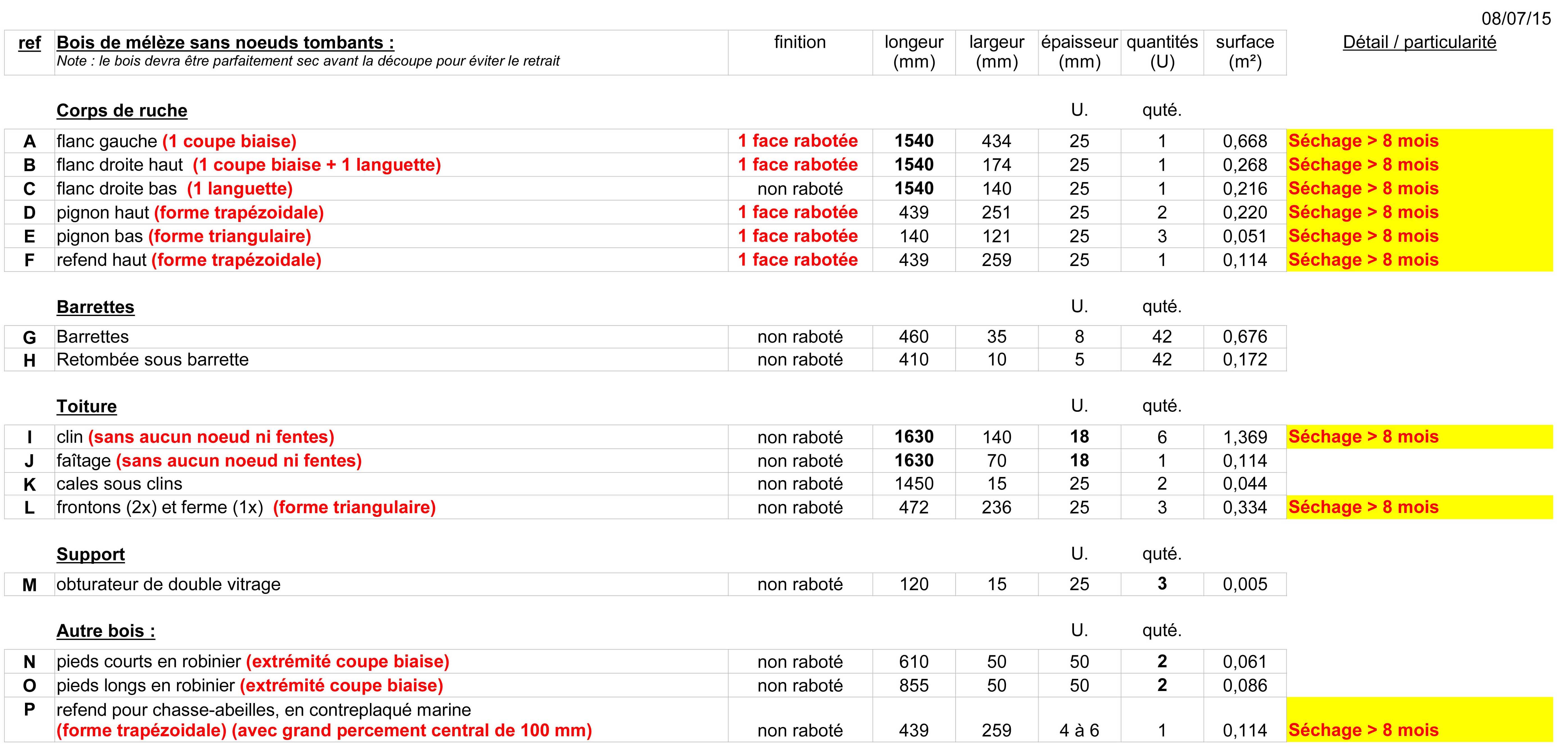 Quantitatif Bois Ruches Kenyane 15 07 08