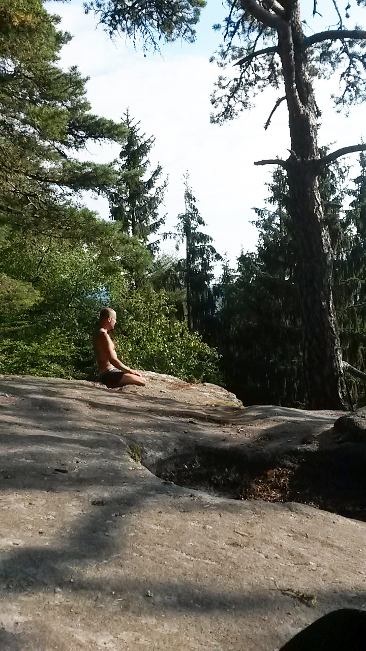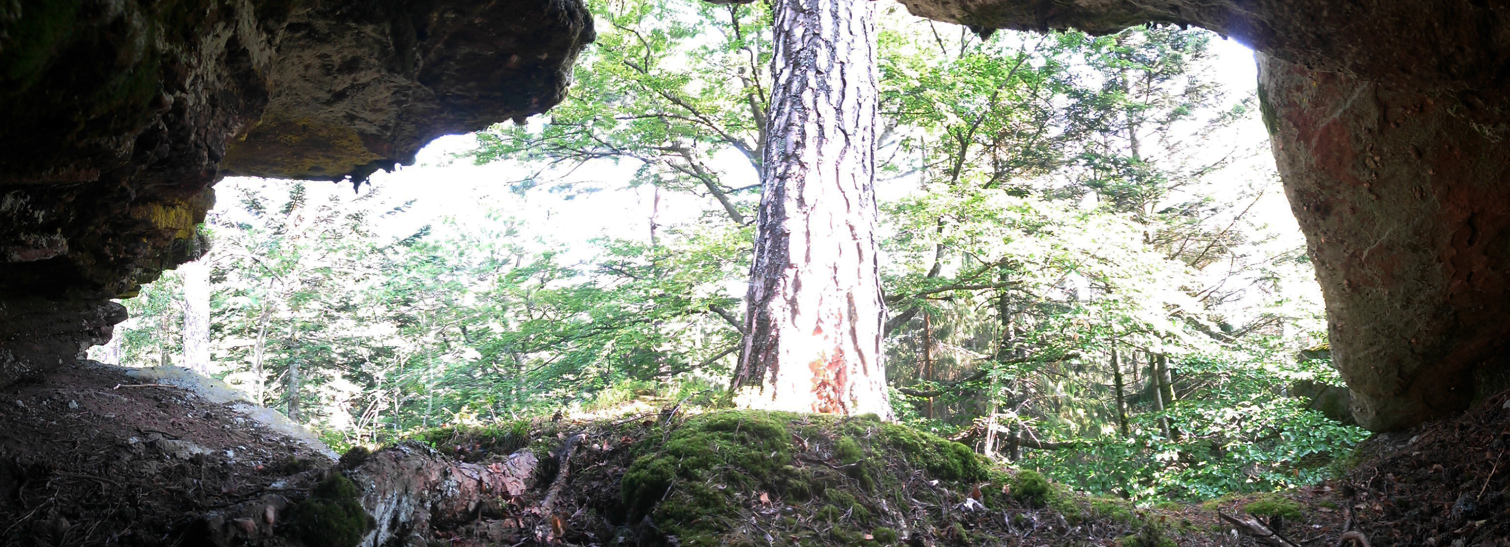 .... arrivée au rocher des géants, au sommet du Taennchel, après une heure de marche. Dans cette dernière partie de l’ascension, le vélo a été laissé au bord du chemin, caché sous des branchages et des feuilles mortes.