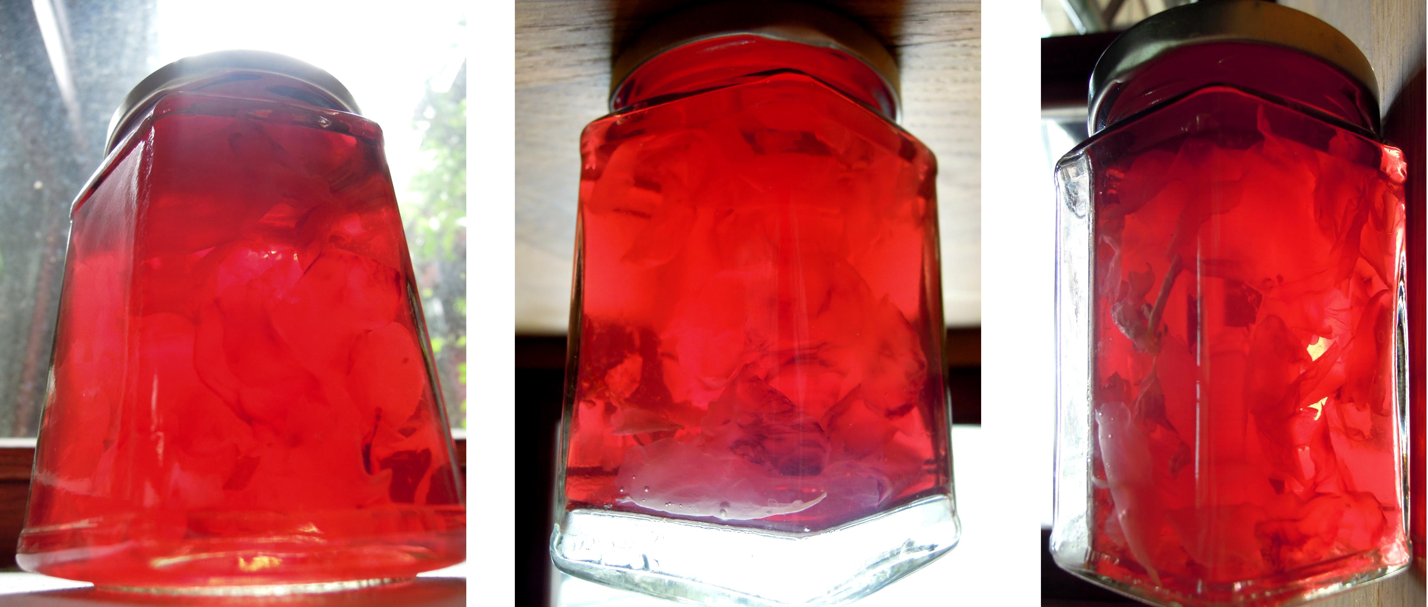 Petit à petit, les pétales se décolorent et l’eau devient rouge. Laisser refroidir.