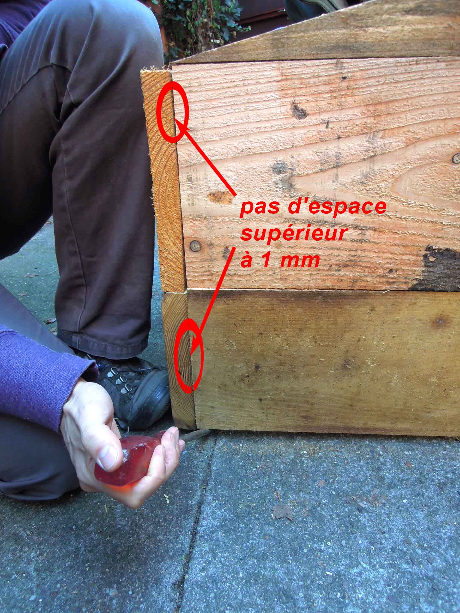 A défaut il faudra colmater les interstices de plus de 1mm avec des cordons en ficelles de chanvre trempées dans de la cire chaude.